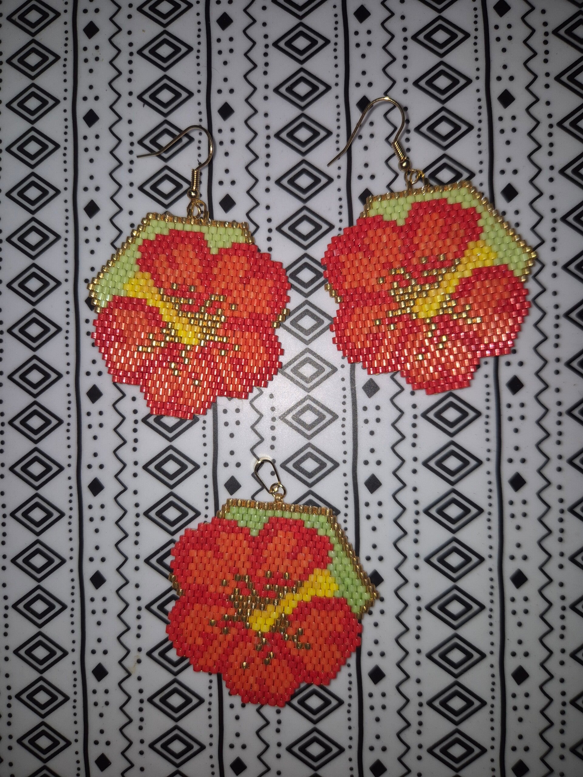 Composé de boucles d'oreilles et d'un pendentif assorti. Un bijou coloré fait main, apporte une touche boho chic et ensoleillée à toutes vos tenues.